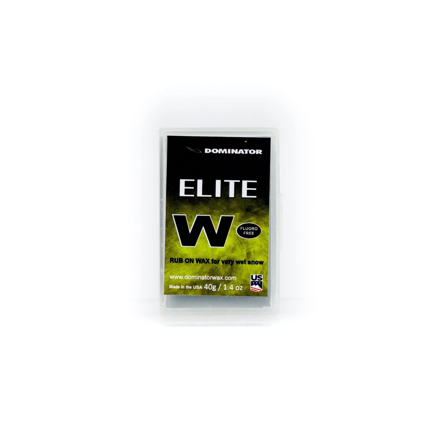 Dominator Elite W rub-on wax is designed specifically to improve glide on very wet snow with warm air temperatures. Elite W can be used on top of Zoom, FFC, Elite, or other waxes to increase performance. Proprietary polymers are used in place of fluorocarbons to increase resistance to friction, durability, and water repellency.