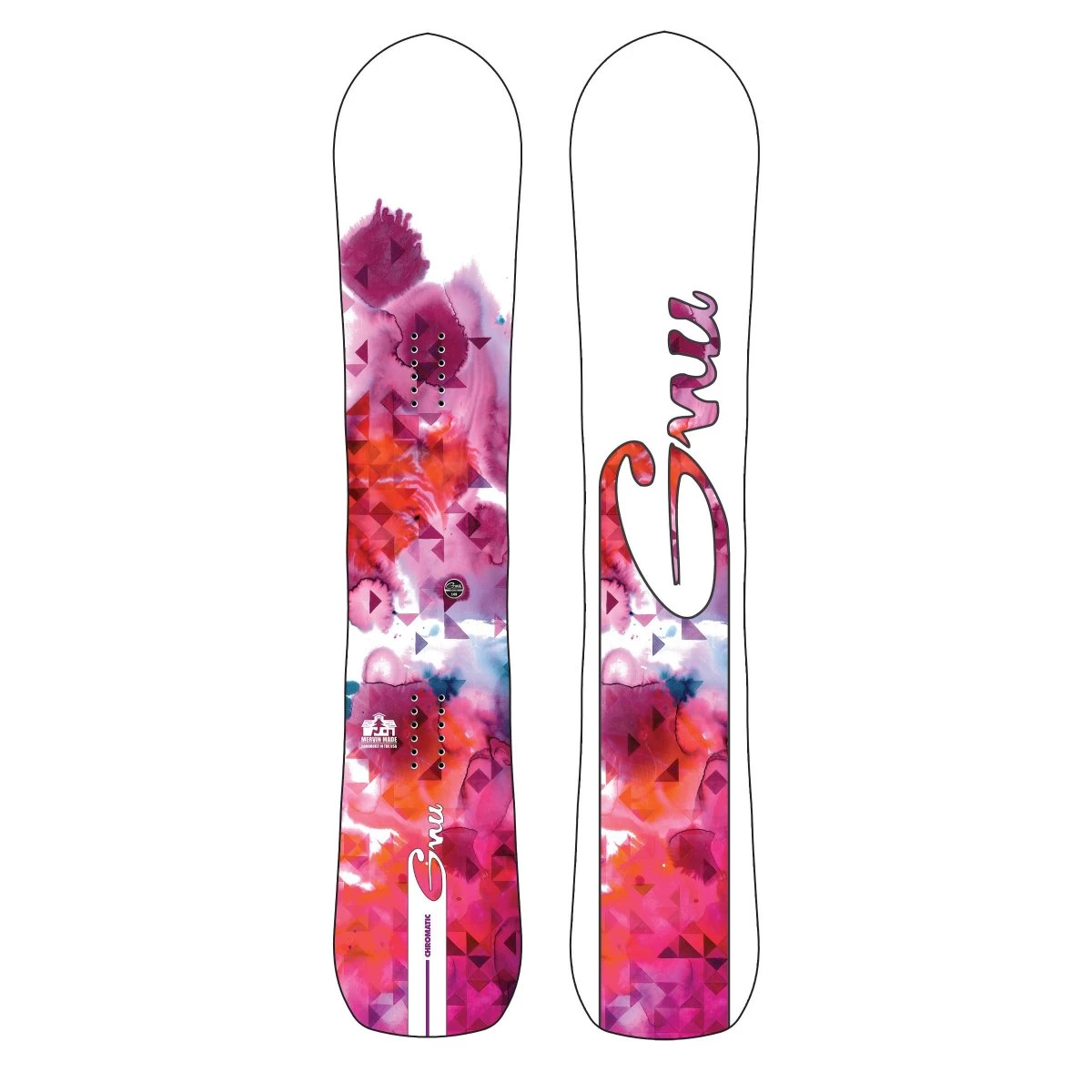 The Chromatic gracefully blurs the lines between freestyle and freeride. It carves circles around the competition, floats in pow, and encourages progression with the Original Banana rocker/camber hybrid contour and Magne-Traction®. Advanced geometries, an all mountain directional shape, and artwork by Corinne Weidmann bring the magic of the mountains to life, rainbow glow and all.